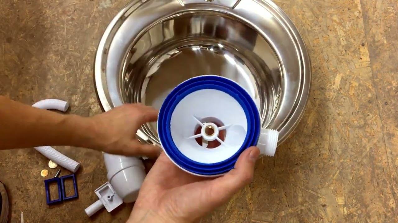 Установка сифона с прямоугольным переливом на нержавеющую мойку