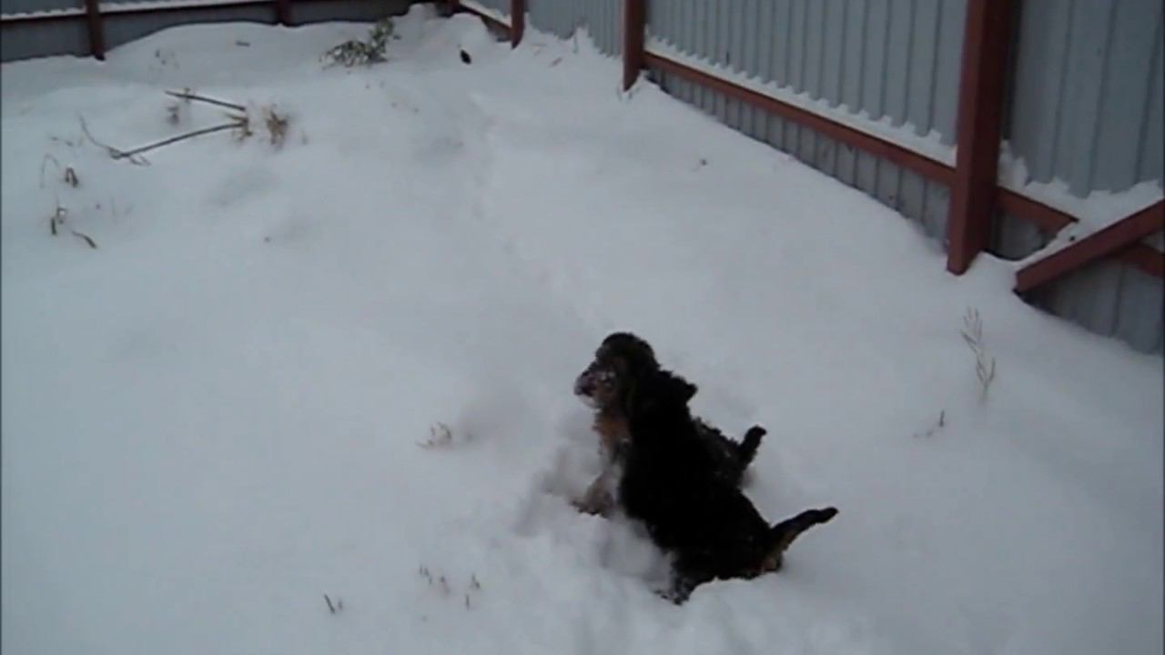 Welsh Terriers puppies for the first time on snow-XII-2017.