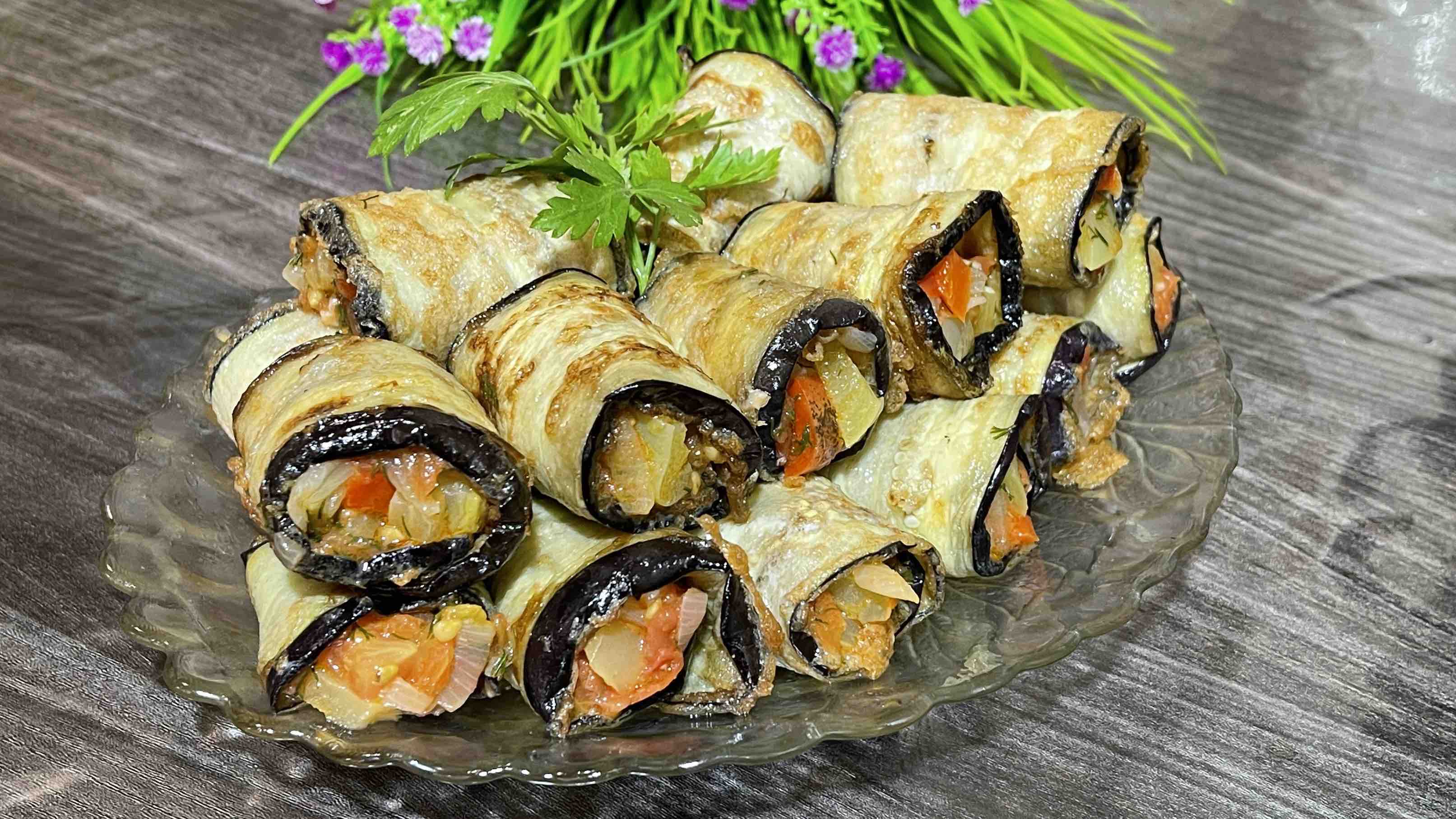 Сметут за минуту. Самый вкусный рецепт закуски из баклажанов. Рулетики из баклажанов. Рецепт Баклажаны 3 шт Яйца 3шт Соль Растительное масло 40мл Начинка Помидоры 2 шт Перец сладкий 3 шт Лук 1шт Чеснок 2 зубчика Укроп по вкусу Растительное масло 40мл Соль #баклажаны #Рецепты #Кулинария #Вкусныерецепты #Рецепт #еда #Какприготовить #чтоприготовить #домашниерецепты