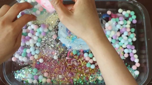 Смешиваем тени «Единорог», макияж, детали, блёстки в слайм! Видео со слаймом!★ASMR★