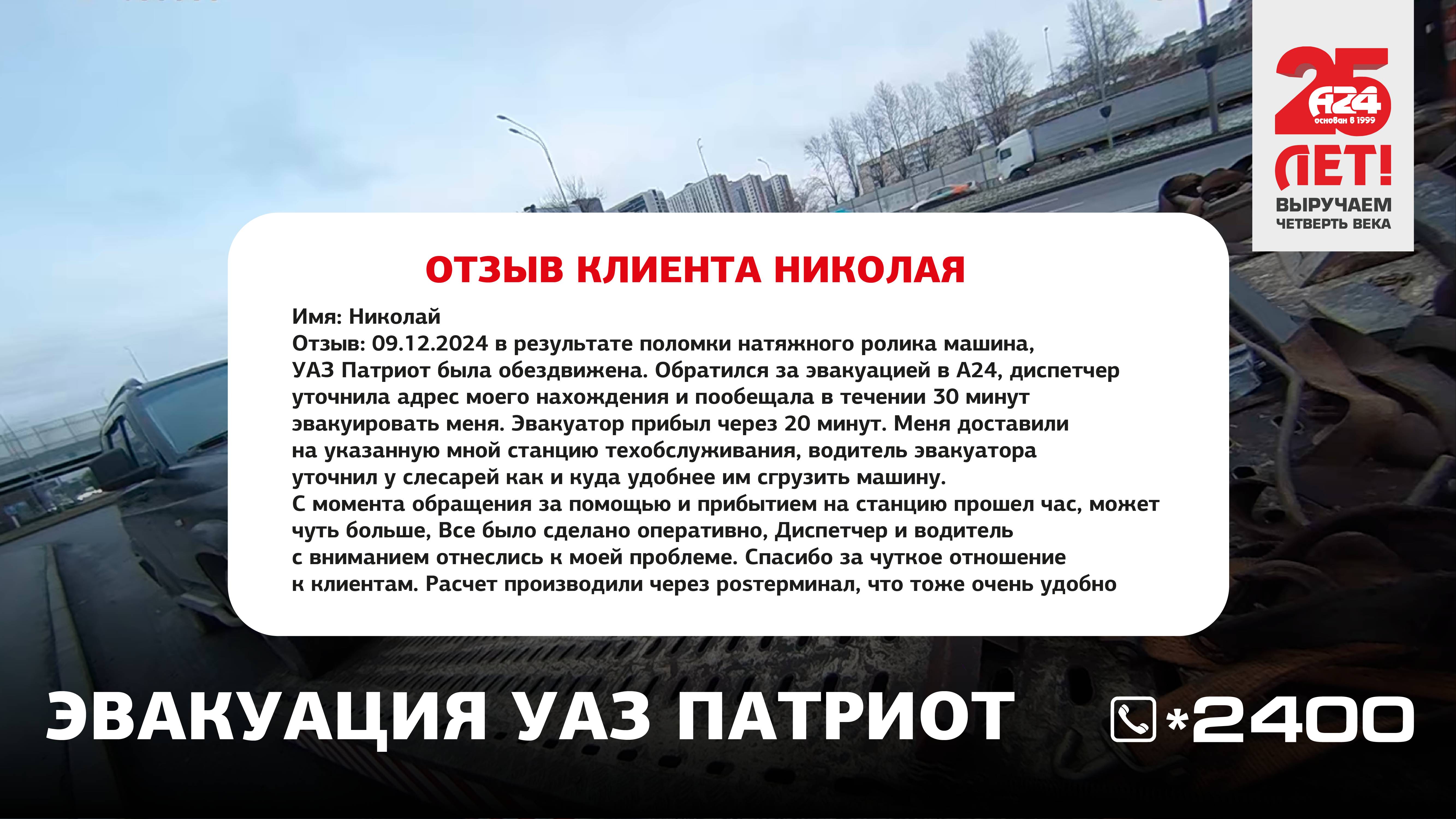 Эвакуация УАЗ Патриот: отзыв клиента