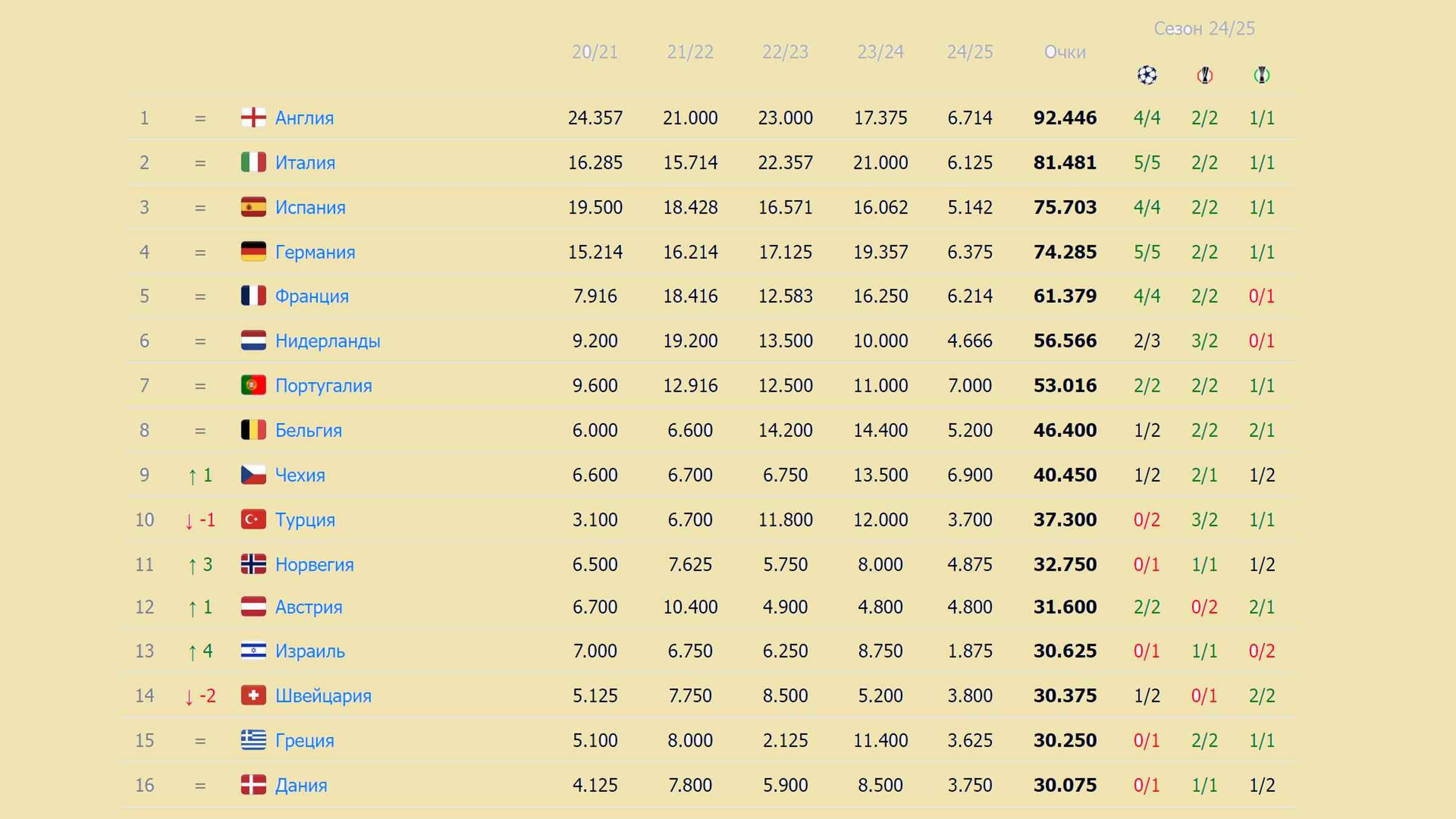Таблица коэф. УЕФА после 2 тура Лиги Чемпионов.