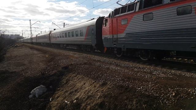 28 марта 2019 года в 14:09 перегон Щербинка - Красный Строитель Курское направление Московская железная дорога CHS7-078 dust and whistle with high- speed train №744 Belgorod-Moscow via Bitsa March 28, 2019 at 14:09 stage Sherbinka-Krasniy Stroitel Kurskoe direction Moscowskaya railway