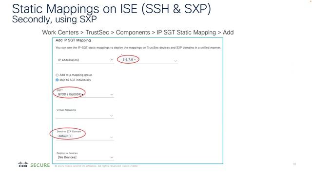 Cisco TME Jonathan Eaves is back to share more about how to do group-based segmentation policy with ISE. 00:00 Intro 00:18 Prerequisite: Group-Based Segmentation Basics: https://youtu.be/rq7bSgO_GPg 01:57 Agenda 03:10 Dynamic & Static Classification Methods 07:10 Cisco TrustSec (CTS) Provisioning and Network Device Enrollment 11:12 Unknown Security Group Tag (SGT) 0 13:41 `policy static sgt n trusted` 16:17 Order of Precedence: CMD, dynamic SGT, SXP, static SGT, static subnet, static VLAN 19:39 SGT Environment Data Downloads 21:10 Default Route SGT 22:56 Propagation 23:05 Static Mappings on ISE (SSH & SXP) 25:23 ISE SXP Domains 29:30 Monitor Capture Commands (Cat9K) 31:45 SXP Reflection (speakers and listeners) 34:20 SXP High Availability 37:56 SXP Filters 40:29 SXPv5 Introduction 41:47 SXPv5 Example 44:13 Enforcement 44:18 Monitor Mode 45:47 Logging 46:48 Enforcement Counters 48:04 Cisco 9800 WLC with SGTs Validation 49:28 Resources: - Catalyst Wireless Group-Based Policy Guide: https://www.cisco.com/c/en/us/td/docs/wireless/controller/9800/tech-notes/Wireless_9800_Group-Based_Policy_Guide_edited.pdf - Cisco Segmentation Strategy Guide: https://community.cisco.com/t5/security-knowledge-base/segmentation-strategy/ta-p/3757424 - Group-Based SGT Troubleshooting Guide: https://community.cisco.com/t5/security-knowledge-base/trustsec-troubleshooting-guide/ta-p/3647576 - Group-Based SGT YouTube Channel: https://www.youtube.com/channel/UCPF6-PTafN8NjomtLccIopw - Group-Based Policy Resources: https://community.cisco.com/t5/security-knowledge-base/segmentation-amp-group-based-policy-resources/ta-p/3656481 - ISE Resources : https://cs.co/ise-resources - ISE Community : https://cs.co/ise-community - ISE Integration Guides : https://cs.co/ise-guides - ISE Compatibility : https://cs.co/ise-compatibility - ISE Webinars : https://cs.co/ise-webinars - ISE YouTube Channel : https://cs.co/ise-videos - ISE Licensing & Evaluations : https://cs.co/ise-licensing - ISE in Cisco DevNet: https://cs.co/ise-devnet - ISE API Reference: https://cs.co/ise-api