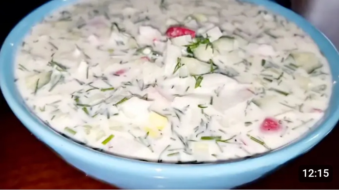 РЕЦЕПТ: Ветчина.500.г. Кефир.2,5%.2.л. Сметана.200.г. Майонез.2.ст.л. Вода.1,5.л. Лук.2.шт. Укроп пучок. Яйца.7.шт. Картофель.450.г. Редиска.200.г. Огурцы.3.шт. Соль перец по вкусу. ПРИЯТНОГО АППЕТИТА!🍒ПРОСТО И ВКУСНО!🍒