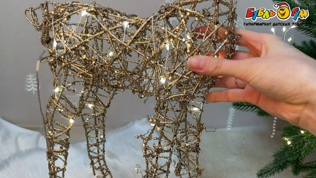 336049 Фигура декоративная Олень с подсветкой и блестками золотой 40см