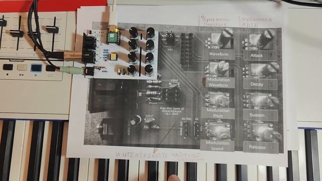Базовые функции моно синтезатора с MIDI, огибающей ADSR и 8 ручками управления