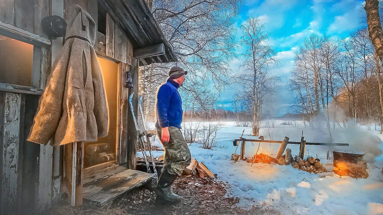 В ТАЁЖНУЮ ИЗБУШКЕ С НОЧЁВКОЙ. РЫБАК СИЛЬНО РИСКУЕТ. РЫБАЛКА НА ЖЕРЛИЦЫ. РЫБАЛКА НА РЕКЕ. ИЗБА РЫБАКА