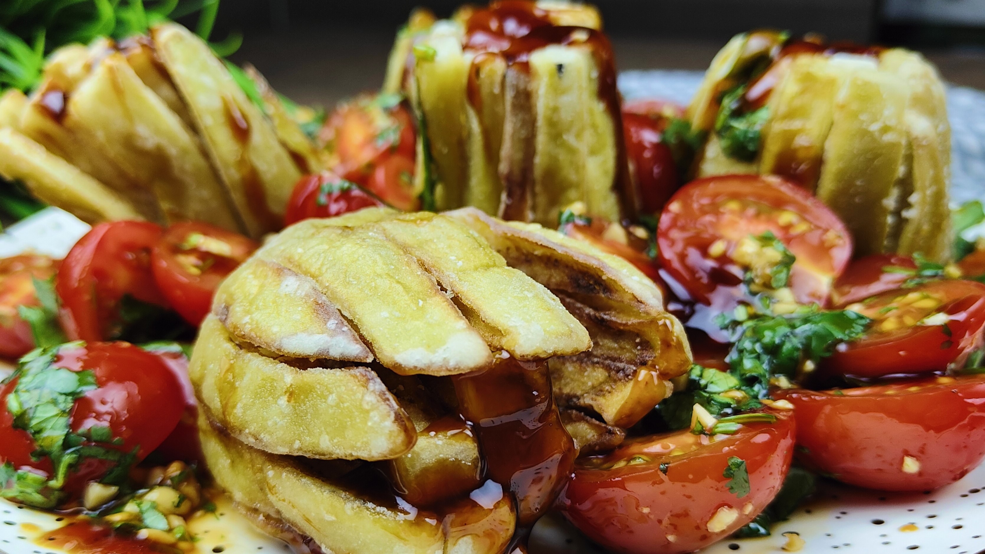 Если у вас дома есть баклажаны и помидоры, приготовьте это невероятное блюдо! Баклажаны по такому рецепту получаются хрустящими, а секретная заправка делает их еще вкуснее. Обязательно попробуйте приготовить и поделитесь рецептом с друзьями. В этом блюде прекрасно все: и хрустящие баклажаны, и заправка с ореховой ноткой. Гости оценят по достоинству ваше угощение. Ингредиенты: 5 небольших баклажанов 400 грамм помидоров 150 грамм кукурузного крахмала Пучок кинзы (можно заменить другой зеленью на ваш вкус) Арахис жареный (по вкусу) Соус Терияки Долька лимона. Благодарю за внимание. Приятного аппетита. ❓Нужна помощь, остались вопросы пишите по ссылке? https://wa.me/79216578689 или http://vk.com/anaska Канал в Телеграм: https://t.me/nastini_soveti #простыерецепты #вкусныерецепты #полезныерецепты #настинысоветы #баклажаны