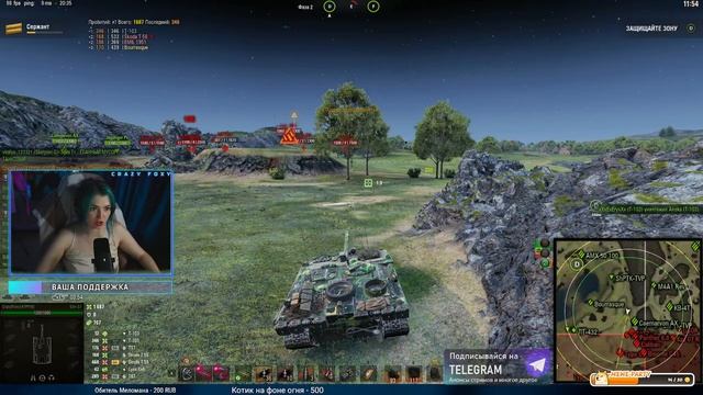 Донат https://www.donationalerts.com/r/crazylfoxy Отправить мем на стрим https://memealerts.com/crazyfoxy Спонсорство на Бусти(фото,видео и др) https://boosty.to/crazylfoxy Альтернативный донат https://donatepay.ru/don/305522 Сбер 5469 5500 1768 3134 ❕Социальные сети: ▶VkPlay Live https://vkplay.live/crazylfoxy ▶Тик-ток https://www.tiktok.com/@crazyllfoxy?lang=ru-RU ▶Трово https://trovo.live/CrazyFoxy ▶Группа vk https://vk.com/crazylfoxy ▶Дискорд сервер https://discord.gg/Tj8EK8W ▶Телеграм-канал + чат https://t.me/joinchat/AAAAAEsGP9TiOdVtVksj4g ======================================================= Обо мне Зовут Настя, живу в Питере. Играю не вау, но чуть выше среднего(53%), имеется об.260 и об.279(р), люблю ст, лт и пт. Заказать танк(кроме арты)-200 руб, арта - 300 руб. Взвод - 500 руб/бой. ======================================================= ❗ПРАВИЛА ЧАТА❗ В чате ведем себя адекватно: - нет советам(как играть, как жить и тд) - нет мату - нет КАПСу(большие буквы) - нет рекламе и самопиару - нет спаму - нет политике - религию и ориентацию не обсуждаем ======================================================= Мои озвучки ▶Для Tanks Blitz https://www.youtube.com/watch?v=uOIQRmELMGc ▶Для Мир Танков https://www.youtube.com/watch?v=_rrxlvBk_JU ▶Сайт Протанки(раздел озвучки) https://protanki.tv/mods/ozvuchka-ekipazha-ot-crazy-foxy-dlia-world-of-tank ✨Команды для Бота: !привет, !пк, !дискорд, !лайк, !бомбит, !стата, !совет,!чат, !рак, !твич, !фокси, !озвучка, !хэр, !onlytanks #МИРТАНКОВ #СrazyFoxy #МТ ⚡Линия фронта ▫ Мир Танков⚡ Support the stream: https://streamlabs.com/crazyfoxy