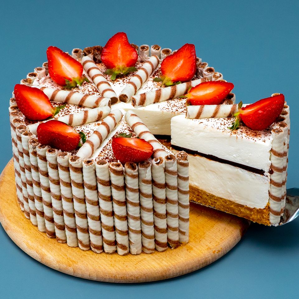 Без муки и без выпечки! Идеальный десерт, для любого случая! Ингредиенты: вафельные трубочки с кремом - 200 г сливочное масло - 80 г печенье - 200 г Диаметр формы 20 см В ХОЛОДИЛЬНИК 30 МИНУТ для крема: сливки - 500 мл сахарная пудра - 100 г ванильная эссенция - 5 мл маскарпоне - 400 г В ХОЛОДИЛЬНИК 20 МИНУТ для шоколадного ганаша: черный шоколад - 100 г горячие сливки - 80 мл нутелла - 50 г В ХОЛОДИЛЬНИК 30 МИНУТ В ХОЛОДИЛЬНИК 30 МИНУТ для декора: вафельное печенье - 100 г клубника - 4 шт какао - 20 г для кофе: растворимый кофе - 10 г горячая вода - 150 мл теплое молоко - 150 мл ванильный сироп - 5 мл карамель - 30 г лед - 80 Текст атрибуции Royalty Free Music: Bensound.com License code: WZ7EJDWVWX3QXZDQ