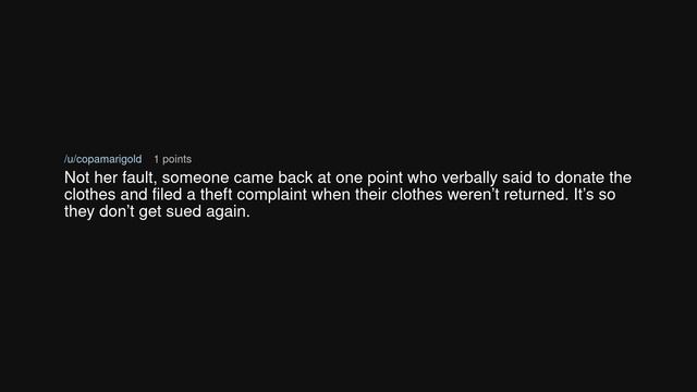 Secondhand store won’t donate extra clothes because I didn’t check a box on a form (r/MaliciousCompliance) Source: thedrick on Reddit (link removed at the insistence of YouTube) Background music by https://www.looperman.com/loops?mid=LilJonesy #Reddit #MaliciousCompliance