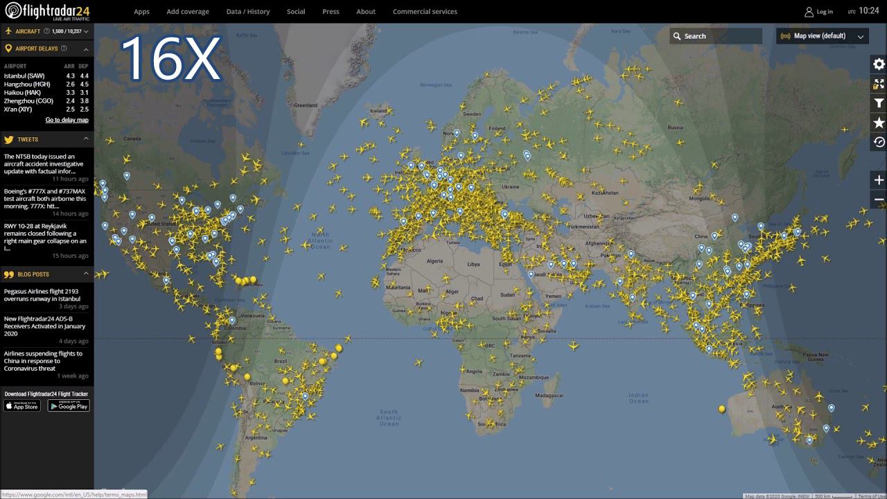 Все самолёты мира на карте в реальном времени .Скорость увеличена в 16 раз