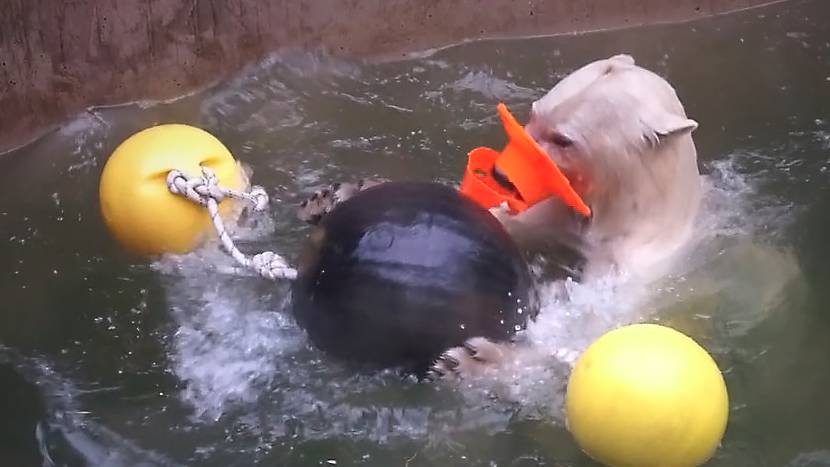 Медвежата Белка и Стрелка. Одна сестренка плавает с игрушками, а вторая провоцирует ее на ссору.