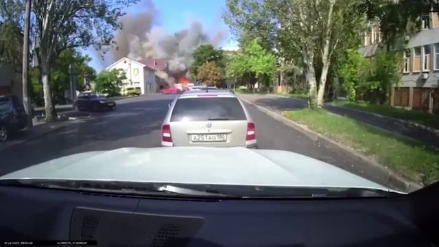 Момент вчерашнего прилёта в Ворошиловском районе Донецка попал на запись видеорегистратора