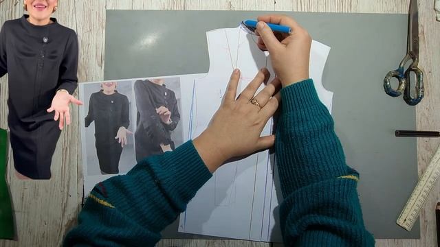 Моделирование. Красивое платье с цельнокроеным воротником. Выкройка № 1921.