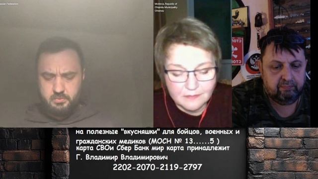 на полезные "вкусняшки" для бойцов, военных и гражданских медиков (МОСН № 13......5 ) : карта СВОи Сбер Банк мир карта принадлежит Г.Владимир Владимирович 2202 2070 2119 2797 карта ПСБ Банк МИР. карта принадлежит Г.Владимир Владимирович 2200 0303 1063 9290 карта ВТБ Банк МИР Г. Владимир Владимирович 2200 2402 3812 9130 карта Тинькофф принадлежит сыну Г. Никита Владимирович 5536 9100 2609 9012 QWI PAY-PAL WEB MANY- www.donationalerts.com/r/drujinnik Спасибо