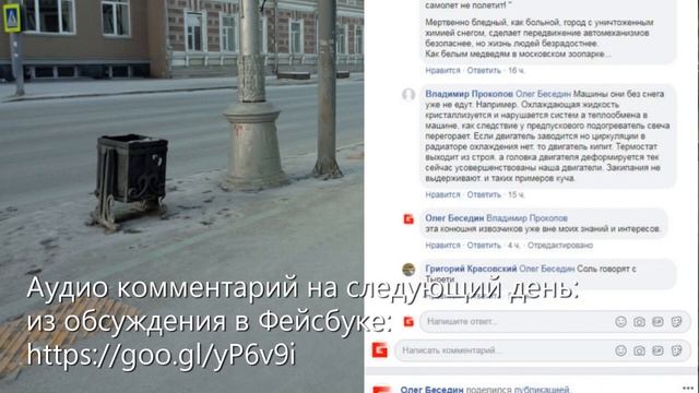 ПРОГУЛКИ ХУДОЖНИКА ПО СТРАННОМУ ИРКУТСКУ 03.02.2019. Из серии (альбома в Фейсбуке) изо-фото-видео репортажей "Прогулки художника по старому Иркутску" (1) https://goo.gl/9v9kvs 1) "Белый город". Второй день удивительных открытий! Что стало с городом? Вчера я обратил внимание на седую белизну тротуаров и полное исчезновение снега, химические потёки и всё бело, будто присыпано белой пылью?! Не пора ли обращаться к экологам? Любуемся необычайно седым городом без снега, с трудом узнавая в нём февральский Иркутск. Боже! Что ты нам послал с небес? 2) Реклама и разговор с рекламными чиновниками-бандуристами. 3) Детские шедевры в кинотеатре "Художественный" - попал на прекрасную выставку детской художественной школы. * * * DONATE-ART – добровольные взносы – Ваш знак того, что моя работа интересна и нужна. Сумма может быть мизерная, не стесняйтесь. Главное – мне понять, что это кому-то нужно и иметь возможность оплатить Интернет для будущих публикаций! Вашу благодарность и монетизированную оценку можно перечислить сюда: 1) На мобильный Сбербанк тел. 89500620251 или просто оплатить этот номер телефона. 2) Yandex-деньги: 410012167239706 3) Карта Сбербанк OLEG BESEDIN "VISA": 4276 1800 1801 1873 4) Карта Бин-Банк OLEG BESEDIN "VISA": 4627 0342 7585 8565 Пожалуйста, не стесняйтесь сообщить о взносе – это позволит мне сформировать круг друзей – закрытую группу, для которых я буду делать эксклюзивные публикации и особо интересные уроки, делиться секретами, персонально отвечать на вопросы и общаться в интерактивном онлайн режиме. * * * facebook.com/oleg.besedin instagram.com/besedin.irkutsk besedin-oleg.livejournal.com vk.com/besedin_oleg