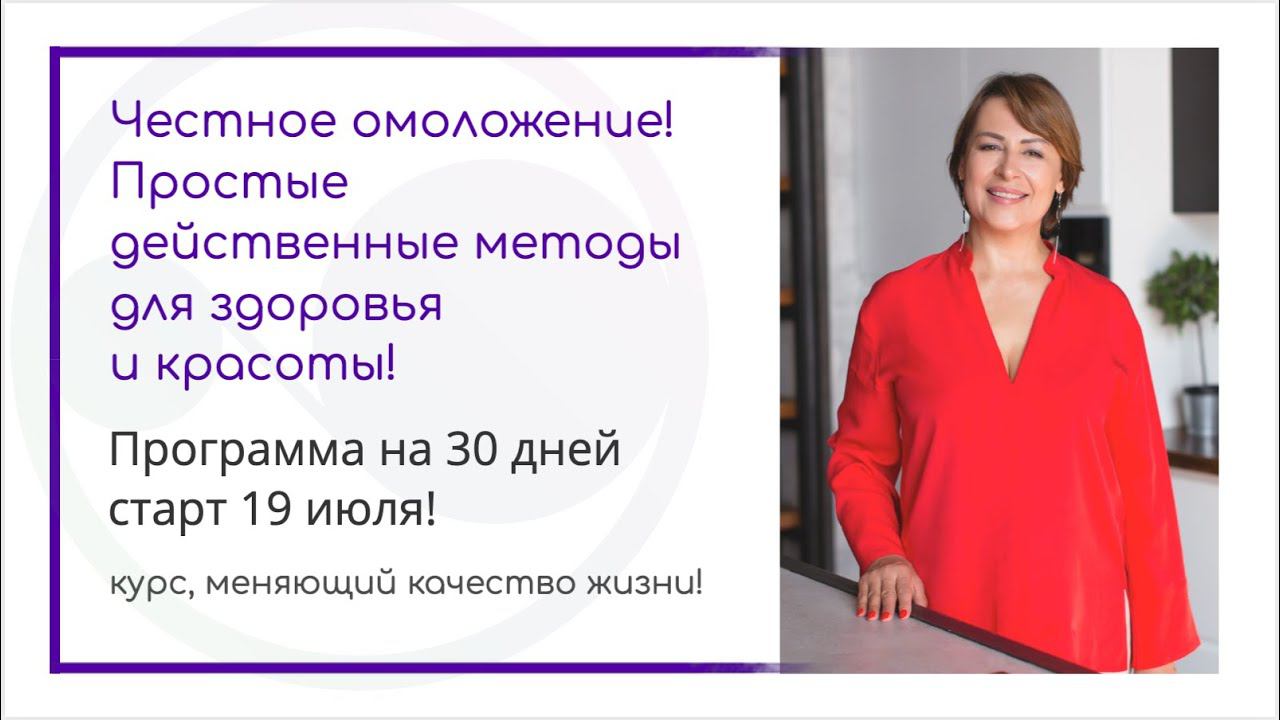 Курс "Честное омоложение" ➡️ https://kurs.margaritalevchenko.ru/young_sale В программе занятий: • Комплексное применение целебных напитков, отваров, укрепляющих все системы организма. • Две полные, эффективные программы против паразитов и грибов в теле • Чистка лимфы • Восстановление и помощь в укреплении иммунной системы • Капилляротерапия • Избавление от отёков • Схемы лечебного и омолаживающего питания • Восстановление микрофлоры организма • Восстановление работы ЖКТ • Укрепление женского здоровья • Облегчение состояния при климаксе и в постклимактерический период • Улучшение сна, снятие невроза • Восстановление гибкости позвоночника и суставов • Возвращение упругости кожи тела • Улучшение состояния кожи лица, волос, ногтей • Блок уроков по энергетической гигиене своего пространства... • План занятий после тренинге на год вперёд • и многое другое, что вы ещё узнаете на курсе Более 100 уроков, с которыми вы сможете преобразить свою жизнь, вернуть силы, здоровье, лёгкость и свежесть тела, блеск в глазах и желание жить! Всё в единой системе - берите и пользуйтесь. Тренинг проходит раз в полгода, успевайте записаться. Я буду с вами на связи в комментариях и прямых эфирах, отвечаю на все вопросы лично. Доступ к курсу один год. ⚡Давайте заниматься! Вместе мы обязательно справимся И лето - это идеальное время для таких мероприятий. Тепло, много солнца, свежей зелени, овощей, ягод и фруктов - легче соблюдать режим и находить время для занятий собой! Подключайтесь по ссылке: https://kurs.margaritalevchenko.ru/young_sale