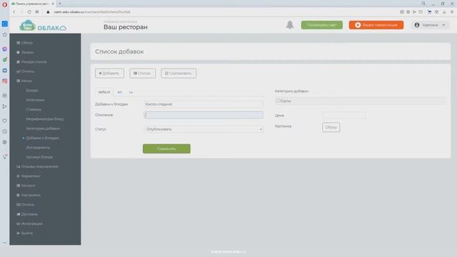 Добавки к блюдам. Как настроить добавки в сервисе "Все?