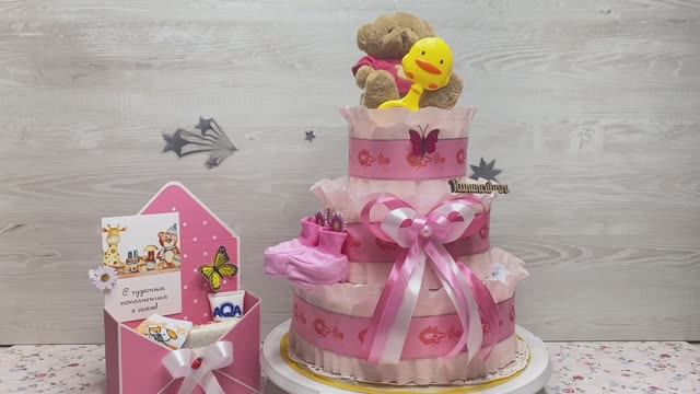 Розовый торт из памперсов для девочки