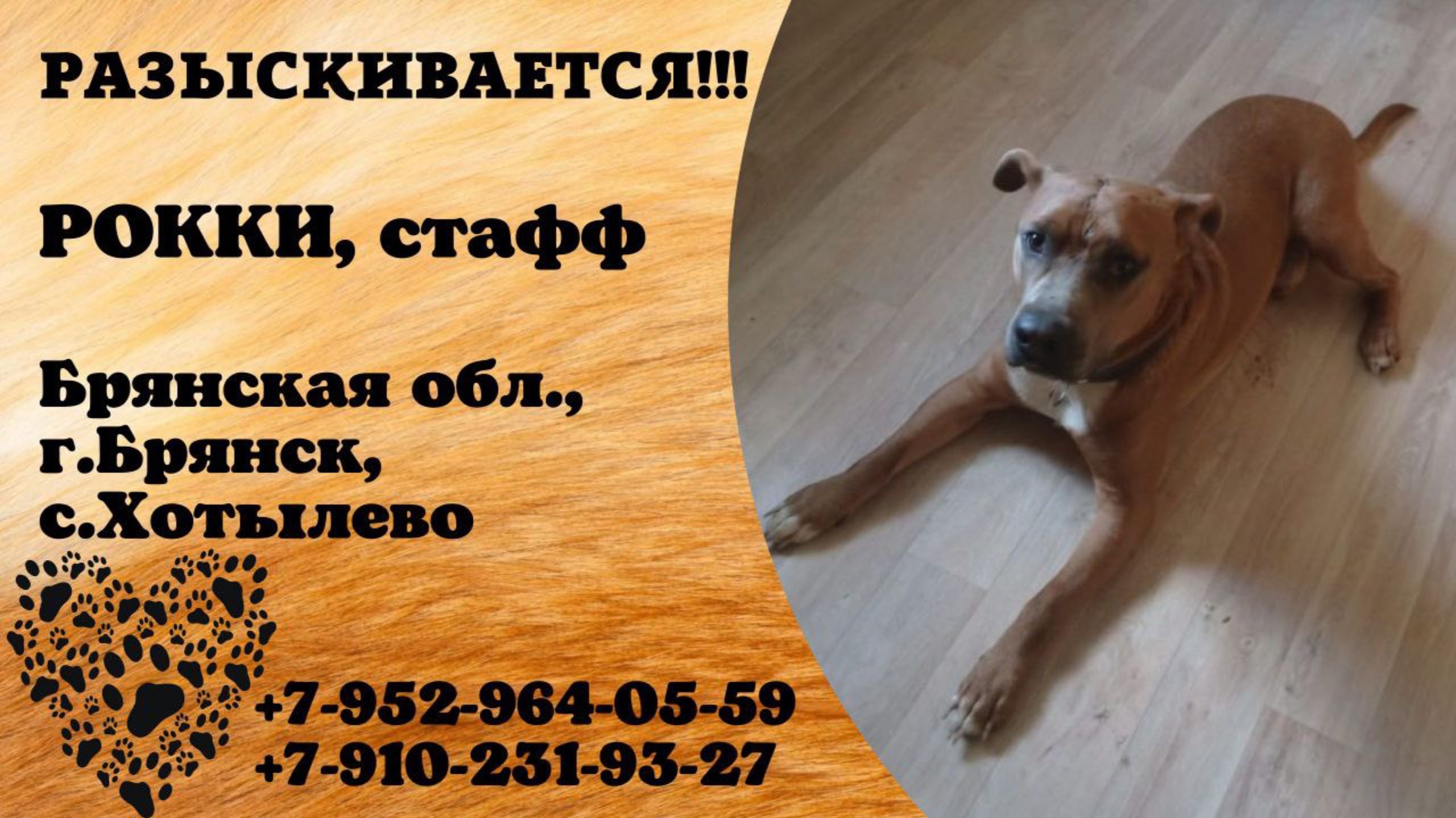 Пропала собака! РОККИ, Стафф. Брянская обл., г.Брянск.
