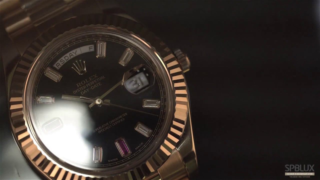 Классическая модель Rolex Day-Date Rose Gold ref. 218235 представлена в необычной дизайнерской версии: черный моноцветный циферблат инкрустирован самоцветами (белыми бриллиантами и рубинами огранки «багет»), выполняющими функцию часовых меток. 41-миллиметровый корпус и фирменный 3-рядный браслет Rolex исполнены из 18-каратного розового золота. При создании часов использован мануфактурный сплав компании – золото Еverose. Эксклюзивный 18-каратный сплав из золота, платины и меди разработан, запатентован и отлит в собственном литейном цеху Ролекс. Сочетание металлов обеспечивает исключительные характеристика вещества: сплав Еverose не тускнеет, обладает повышенной стойкостью к коррозии и необычным оттенком. Мужские часы Rolex Day-Date 218235 оснащены механическим калибром с автоподзаводом, обеспечивающим модели 50-часовой запас ходы и водонепроницаемость на глубине до 100 метров. Часы Rolex 218235 Black Diamond Rubin Dial, помимо безупречного исполнения мастерами известнейшей часовой компании, обладают всеми функциями необходимыми современному хронометру: индикация часов, минут, секунд, даты и дня недели (с возможностью быстрой коррекции). Укрупненное окошко даты с лупой, оформленное в традиционной для коллекции манере, расположено в положении «3 часа», окошко дня недели – над отметкой «12 часов». Наш официальный сайт: http://spbluxwatches.ru/ #spblux #spbluxwatches #spblux_watches #rolex