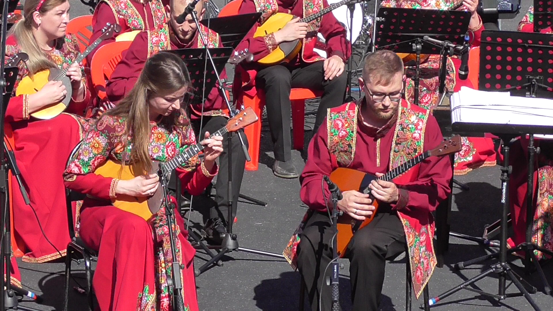 Тульский народный оркестр. Музыканты играют на балалайках