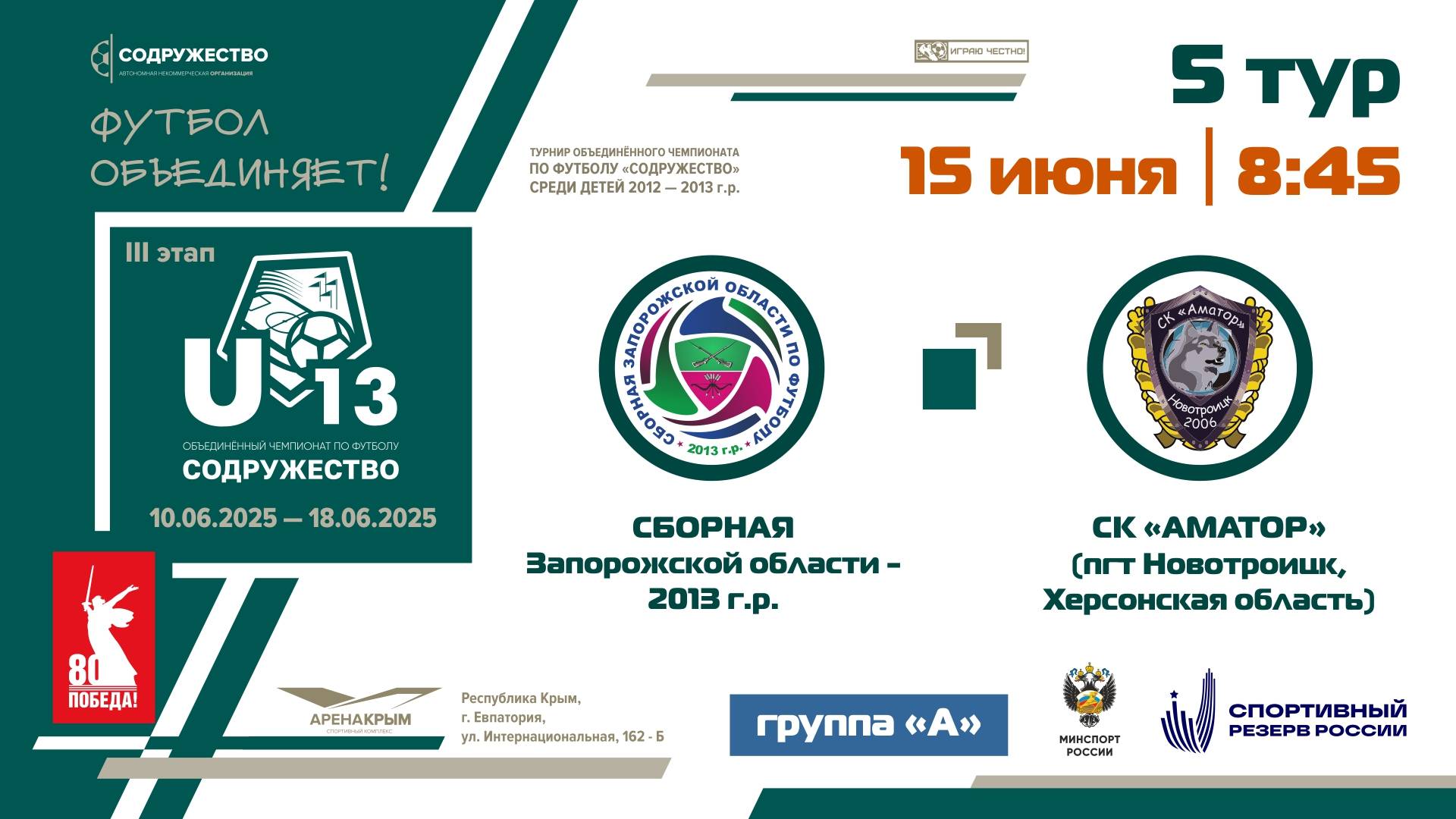 5 ТУР [Группа А] | Сборная Запорожской области 2013 г.р - СК «Аматор» (Новотроицкое, Херсонская обл)