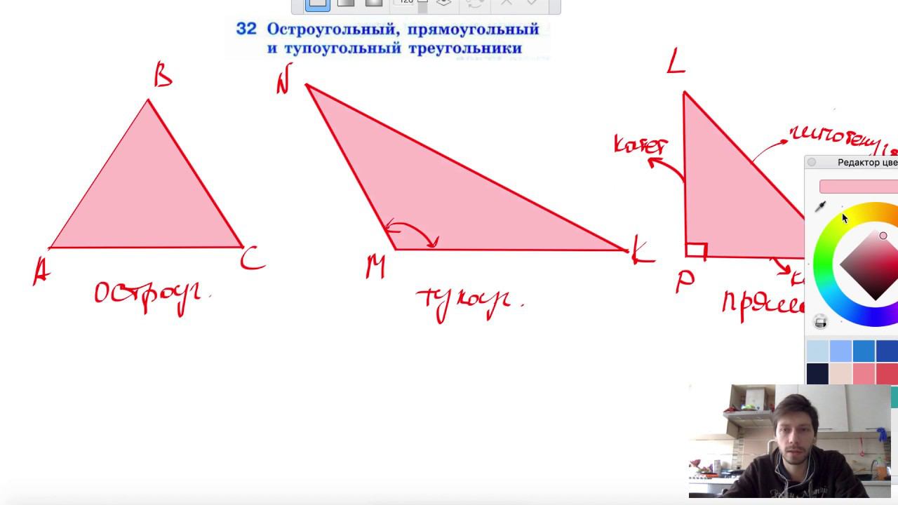 32. Остроугольный, прямоугольный и тупоугольный треугольники