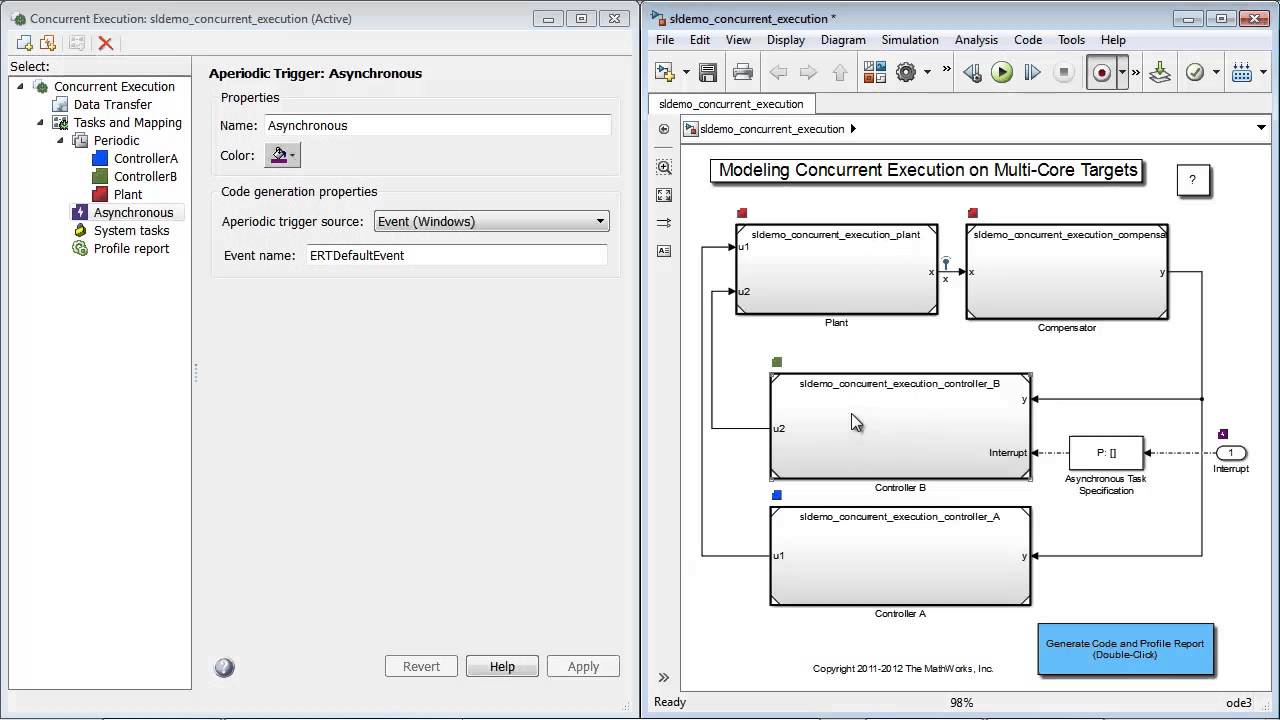 Вы узнаете, какие существуют возможности при симуляции многозадачных моделей в Simulink и как осуществляется переход от симуляции к генерации многозадачного кода и профилированию времени его выполнения.