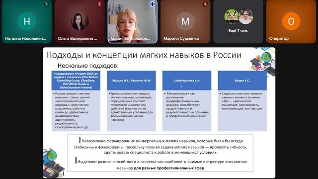Описание лекции 12.05.2025. Тема: «Мягкие навыки: концепции, проблемы, исследования» Спикеры: Авдеева Наталия Николаевна, кандидат психологических наук, профессор кафедры «Возрастная психология имени профессора Л.Ф. Обуховой» факультета «Психология образования» МГППУ. Кочетова Юлия Андреевна, кандидат психологических наук, и.о. заведующего кафедрой «Возрастная психология имени профессора Л.Ф. Обуховой» факультета «Психология образования» МГППУ, магистр по направлению психолого-педагогическое образование, клинический психолог, EMDR, АСТ, ТТС. Климакова Мария Вячеславовна, старший преподаватель кафедры «Возрастная психология имени профессора Л.Ф. Обуховой» факультета «Психология образования» МГППУ.