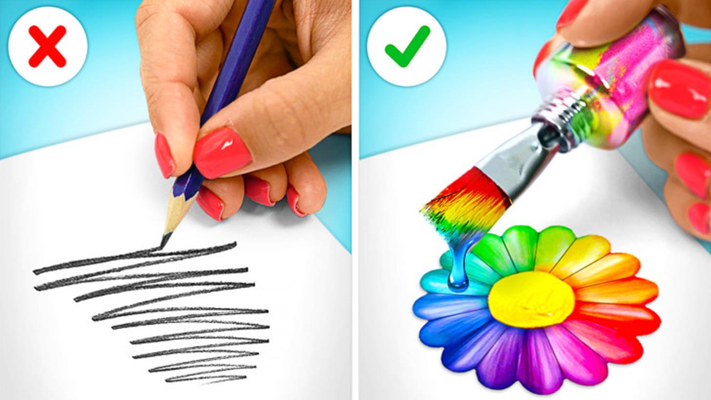 🎨 Крутые и необычные хитрости для рисования ✏️ Замечательные лайфхаки!