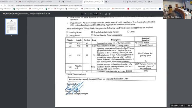 Village of Mamaroneck Zoning Board of Appeals Meeting Dec 29, 2022