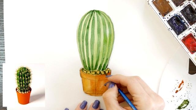 Как нарисовать кактус карандашом и акварелью | Рисунок поэтапно и легко для детей
