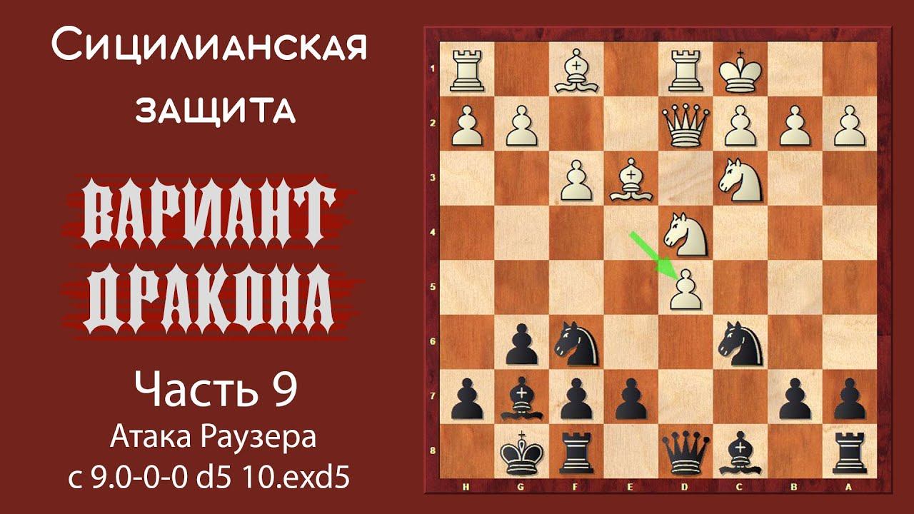 Сицилианская защита. Вариант Дракона (часть 9). Атака Раузера с 9.0-0-0 d5 10. exd5