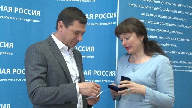 Медаль КРООВВМ "Единство поколений" "За вклад в патриотическое, эстетическое и нравственное воспитание населения" была вручена 29 сентября 2017 года главе города Краснодар Евгению Первышову председателем КРООВВМ "Единство поколений" Инной Силенок в общественной приемной партии "Единая Россия"