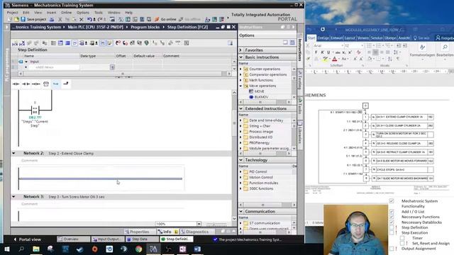 Here is one way of programming a sequential system using LAD/FBD. I took the video from my old channel, where the quality was a bit different, but the content still has high quality! Contents: - I/O Lists - System Application - Functions - Timer - Datablocks - Step Definition - Step Execution - Set/Reset/Assign Qualifiers - Output Assignment