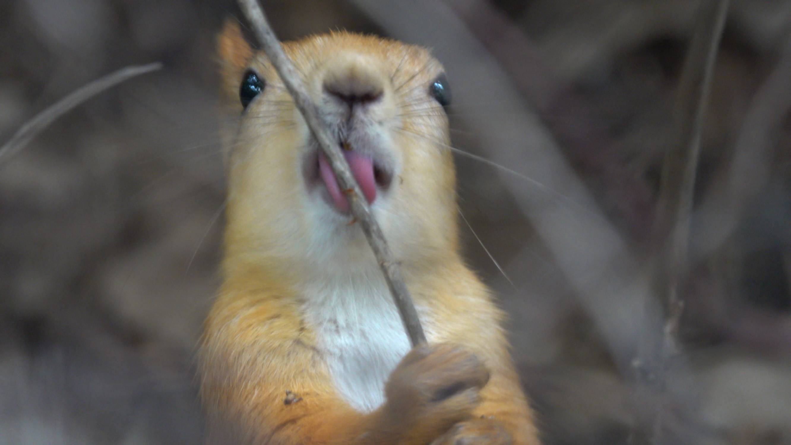 Белка, которая облизывает кустики