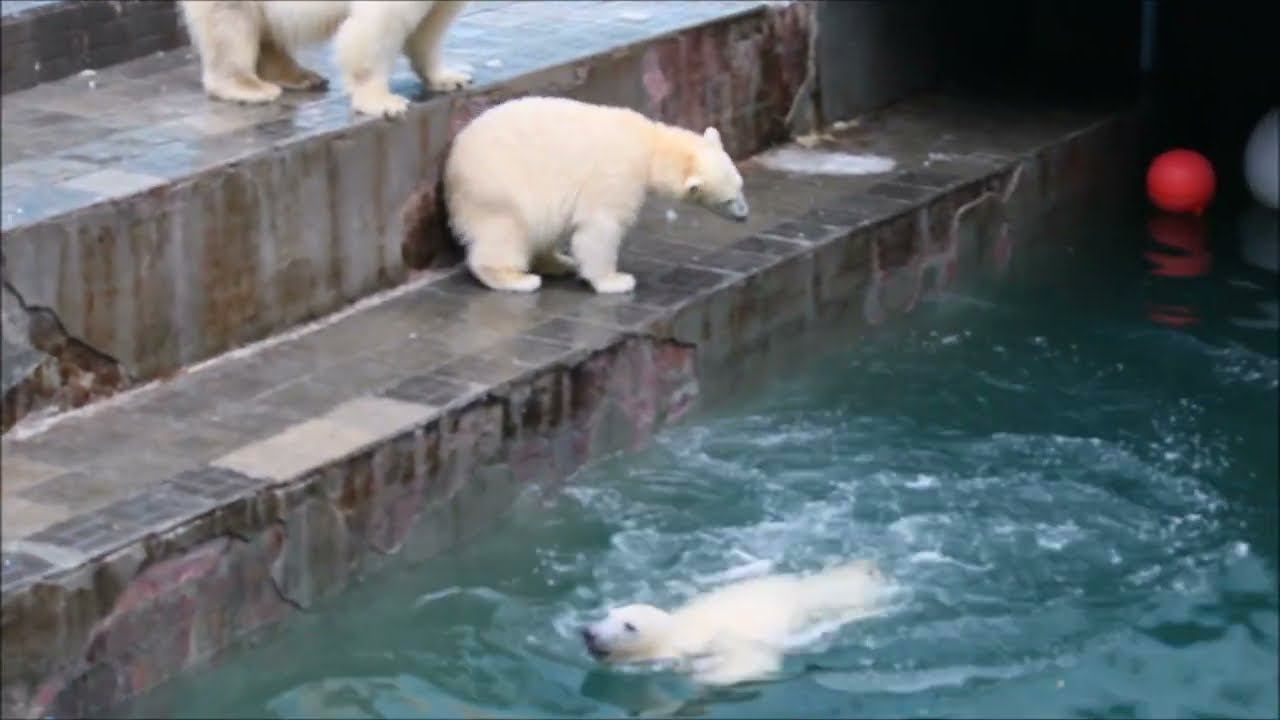 Герда родилась в Москве 20 ноября 2007 года. Её мама Симона, папа Врангель. В Новосибирск переехала 05.08.2008. В 2013 году у Герды и Кая родилась Шилка. В 2015 году она переехала в Японию. В 2015 году родился Ростик. 6 декабря 2018 года он переехал в Китай. В 2018 году родились Норди и Шайна. Сейчас они находятся в нашем зоопарке в закрытой от посетителей хозяйственной зоне. В другие зоопарки их не могут отправить. Сначала была пандемия, сейчас границы закрыты и санкции. Белые медведи Норди и Шайна содержатся в МУП «Новосибирский зоопарк имени Р. А. Шило» с рождения и по настоящее время. Данная пара молодых медведей находится вне экспозиции зоопарка, поэтому посетители не могут их видеть. Передача молодых медведей в другой зоопарк пока не планируется, — ответили на запрос редакции в пресс-центре мэрии Новосибирска. У них есть бассейн, игрушки. Их так же кормят как и раньше. Голодные не бывают. Шайна размером с маму, Норди с папу. Шайна командует Норди. Одиночные животные. Как правило, миролюбивы по отношению друг к другу, но между самцами в брачный период случаются стычки. Взрослые самцы могут нападать на медвежат. Гон с марта по июнь. Продолжительность жизни — максимум 25—30 лет; в неволе рекорд долгожительства — 42 года. Вес очень крупных самцов в некоторых частях ареала 700 и даже 800 кг: есть данные о зверях весом до 1000 кг. Обычно вес меньше. Самки всегда не только меньше, но и значительно легче самцов. Так, самцы в восточной Гренландии в состоянии нормальной упитанности весят 400—450 кг, хорошо упитанные — до 500 кг, самки, даже очень сытые, здесь же редко весят больше 350—380 кг, т. е. их вес составляет около 75% веса самцов. Длина тела на 3-й день после рождения 28—32 см, средний вес — около 755 г (650—840 г). На 26-й день длина тела увеличивается незначительно — до 35—38 см, а вес возрастает до 1125—1275 г. В возрасте 60 дней самцы весят около 7 кг, самки — около 6 кг при длине тела у первых 58—60 см, у вторых 54—58 см. В возрасте 4 месяца медвежата достигают веса 22—23 кг, в 6-месячном возрасте при длине около 110 см — 40—43 кг, в 8-месячном — 58—62 кг. Длина тела в возрасте с 6 до 9 месяцев нарастает по 6—7 см в месяц. Во время зимнего сна рост почти прекращается. В зоопарке медведей кормят утром морской рыбой, хлеб с рыбьим жиром внутри, морковь, яблоки, морская капуста. Медвежат подкармливают молоком из соски. На ужин мясо (говядина, конина, куры или индейка). Летом и осенью арбузы, дыни, ранетки, кабачки, тыквы. Когда показательное кормление летом бросают живую рыбу. 16 декабря 2022 года Герда родила 2-х медвежат. И это две девочки! Имена дали 25 июня. Медвежат зовут Стрелка и Белка. Обзор вольеров белых медведей https://www.youtube.com/watch?v=mAt_b7JD0B4&list=PLGvf0V-rAHxkpGKJaWIZIUxRKgKiqV3xZ&index=17&t=0s
