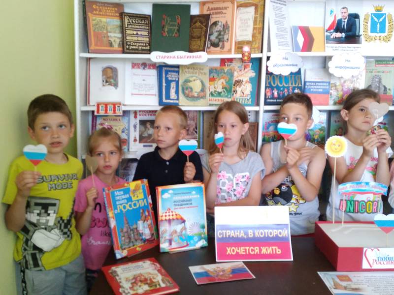 «Душа России в её символах» - под таким названием в детской библиотеке с. Генеральское прошел патриотический час, посвящённый Дню России. На мероприятие были приглашены участники клуба «Знайка». Библиотекари рассказали ребятам об истории праздника, о том, что Россия — это независимое государство, имеющее свою территорию, свой государственный язык, свои законы, официальные символы. Ребята активно и дружно отвечали, как называется самый главный город страны, что обозначают цвета российского флага, как зовут человека, который любит свою Родину, вспоминали пословицы о Родине, отгадывали загадки. Ребята изготовили сердечки - триколор и на них написали свои пожелания любимой стране. Для участников мероприятия была подготовлена книжная выставка «Россия - страна в которой хочется жить».