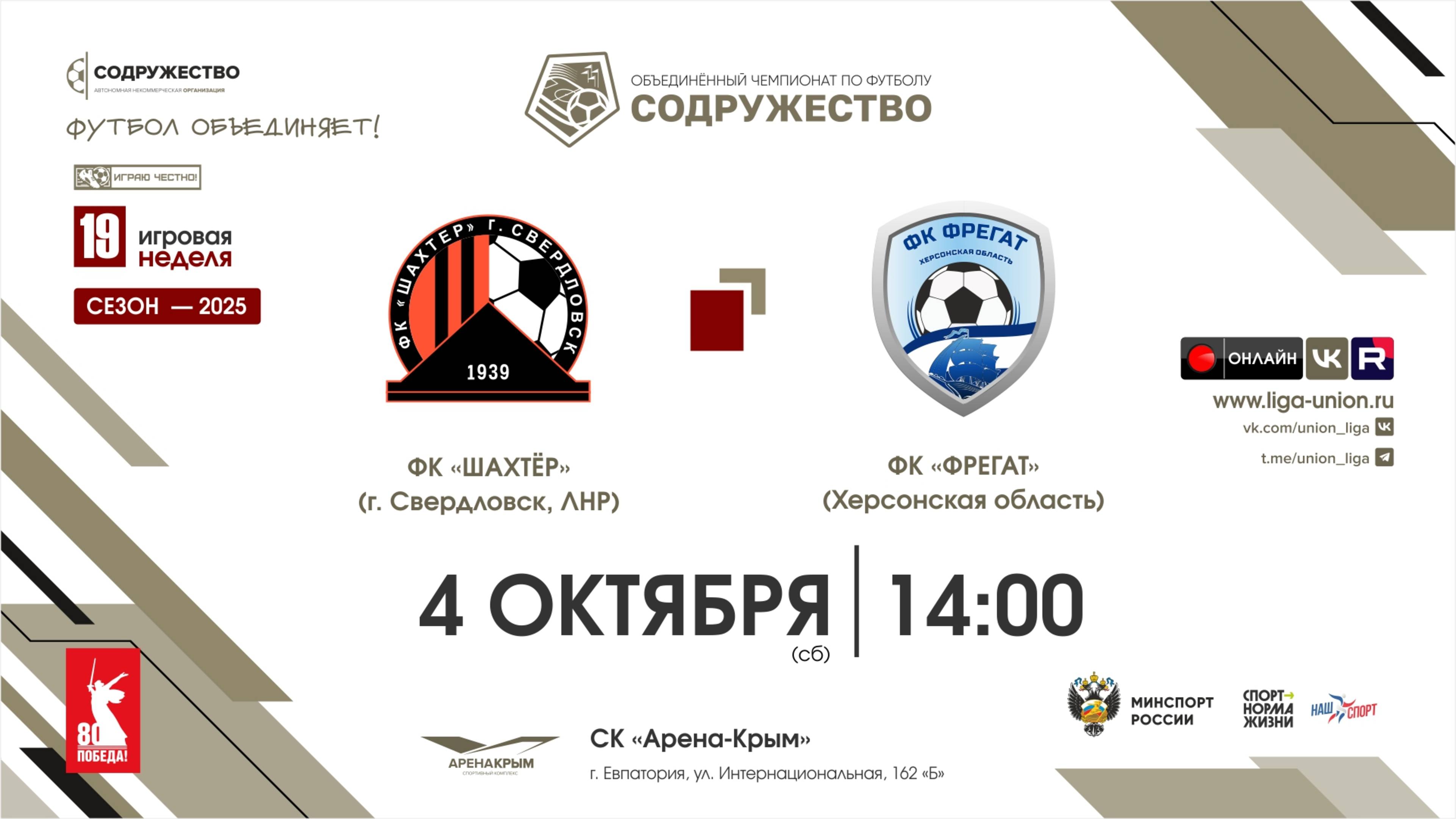 19 неделя (2025) | ФК "Шахтёр" (Свердловск, ЛНР) - ФК "Фрегат" (Херсонская область) | 04.10.2025