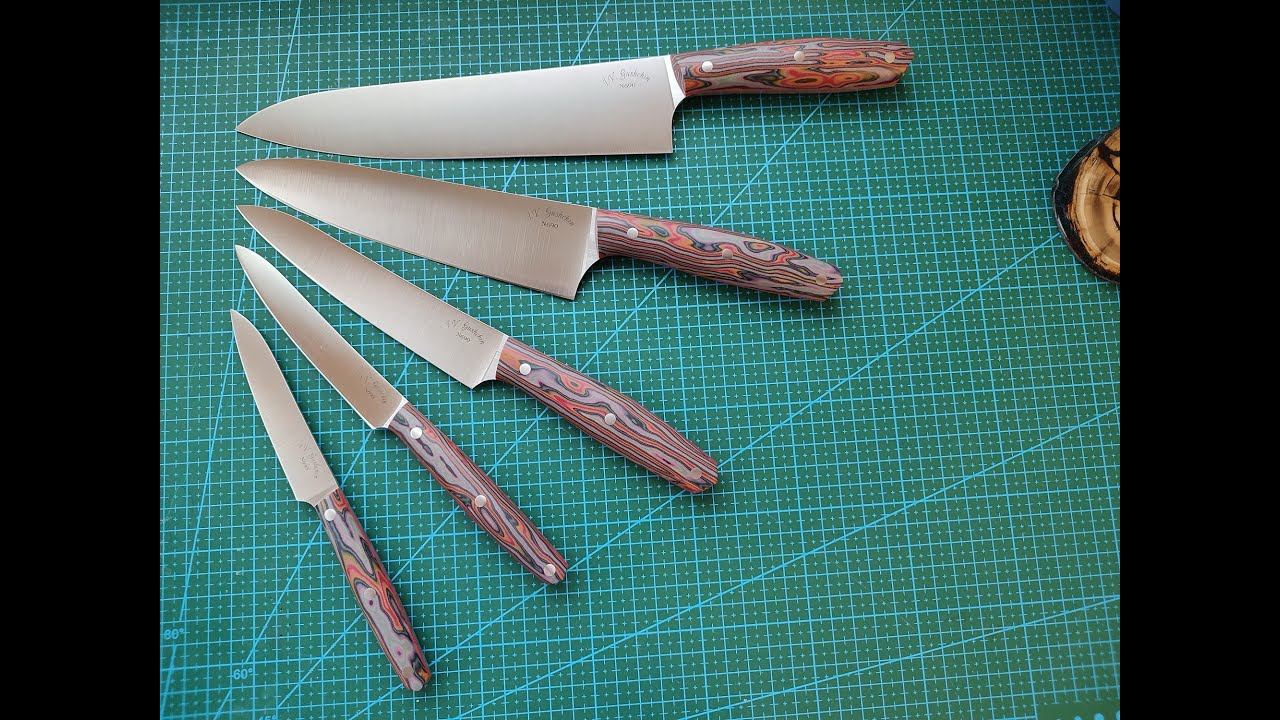 Комплект кухонных ножей из 5 штук. Выполнен из Австрийской кобальтовой нержавейки N690. Термичка Сергея Бурова 61 hrc c крио. На рукоятях микарта от CrazyFiber, проставки G10. Стяжки корби из нержавейки. Ножи заточены алмазами на Профиль К-03 Под заказ можем выполнить эту модель из любых доступных нам материалов. Коментируйте по модели и пожелания по исполнению. Не забудьте подписаться! Чтобы не пропустить новые видео. Контакты для связи: тел. +79671764185 Игорь Страница ВК - https://vk.com/id540957866