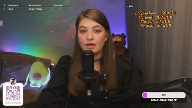 Привет, дорогой зритель! Меня зовут Юля, живу в самом красивом городе Санкт-Петербург, и я очень рада тебя видеть здесь на моем канале) Сегодня я провожу прямую трансляцию и поэтому прошу Тебя поддержать меня ну и конечно же петь песни вместе со мной Стримы проходят каждый ВТ и ЧТ в 19:30 по мск Возможны и выходные дни, смотри подробнее в группе ТГ Ссылка на донат ИЛИ если вы хотите увидеть свое сообщение на экране - https://www.donationalerts.com/r/yunihka Если просто хотите поддержать мое творчество номер карты СБЕР: 4276550062989176 Заказ песни вне очереди от 100 р. ЧТО Я МОГУ СПЕТЬ ДЛЯ ТЕБЯ смотри тут https://disk.yandex.ru/i/YTq-QLQ9VLuGvA https://www.streamersonglist.com/t/yliannohka/songs Вы так же можете получить сигну написав в чат "ХОЧУ СИГНУ" и забирать ее в телеграмме Так же сигна делается автоматически всем, кто отправил донат Хочу сказать огромное СПАСИБО всем донатерам и просто случайным зрителям! Я надеюсь Вам все понравится ❤️ ИЩИТЕ МЕНЯ ЗДЕСЬ: инстаграм (запрещен в РФ): https://www.instagram.com/yunihka/ (@yunihka) вк: https://vk.com/yunihka Телеграмм: https://t.me/yunihka_youtube ТВИЧ: https://www.twitch.tv/yliannohka ВК плэй https://profile.vkplay.ru/profile/gu3tmnjtge2tkmjqheydimzwha4dkmi РУТУБ: https://rutube.ru/channel/7667529/ #стрим#караоке#разговоры#живойзвук#вокал#живойвокал#поем#петь#музыка#поемкараоке#петькараоке#cover#music#стрим#прямойэфир#караоке Не забудь поставить пальчик вверх а я для тебя сделала тайм коды ❤️ 1. 00:00 Заставка 2. 08:38 Начало стрима 3. 17:59 - 22:41 Ольга Кормухина - Путь 4. 24:24 - 27:28 Jazzdauren - Дарите женщинам цветы 5. 33:53 - 37:06 Шура - Ты не верь слезам 6. 43:06 - 47:00 Lx24 - Уголек 7. 49:59 - 53:11 Леонид Агутин, Отпетые мошенники - Граница 8. 58:18 - 14:02:19 Антон Токарев - Ночь 9. 1:08:13 - 1:11:38 Рауф и Фаик - Детство 10. 1:16:46 - 1:20:25 Iowa - Одно и тоже 11. 1:24:55 - 1:27:13 Кристина Орбакайте - Мой мир 12. 1:34:03 - 1:38:11 А-студио - Стань моей молитвой 13. 1:43:05 - 1:47:03 София Ротару - Луна 14. 1:54:42 - 1:59:44 Наташа Королева - Мальвина 15. 2:04:11 - 2:07:58 Митя Фомин - Все будет хорошо 16. 2:15:11 - 2:20:14 Божья коровка - Гранитный камушек ❤️ 17. 2:24:31 - 2:28:14 Modern Talking - Brother Louie 18. 2:35:47 - 2:39:45 Алексеев - Снов осколки ✨ 19. 2:44:04 - 2:50:28 Кипелов - Я свободен 20. 2:53:47 - 2:59:23 Би-2 - Молитва ☺️