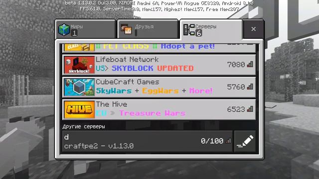 Я создал свой сервер на Майнкрафт 1.13.0.2
