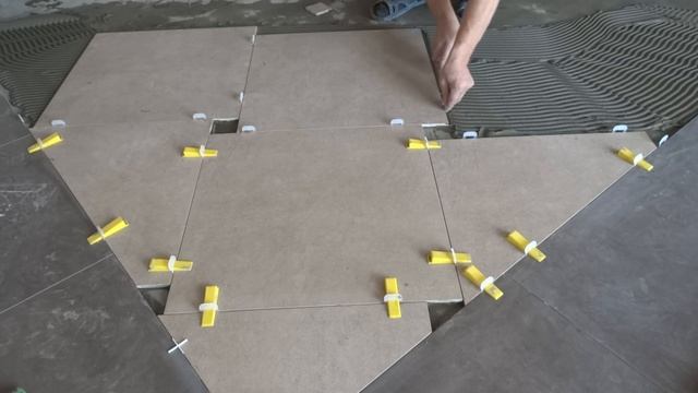 укладка керамогранита на пол по диагонали с декором..