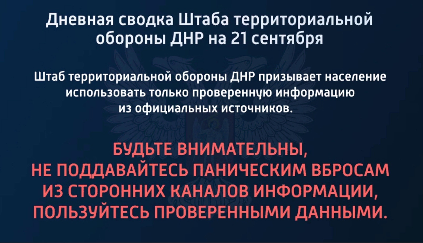 Дневная сводка Штаба территориальной обороны ДНР на 21.09.2022