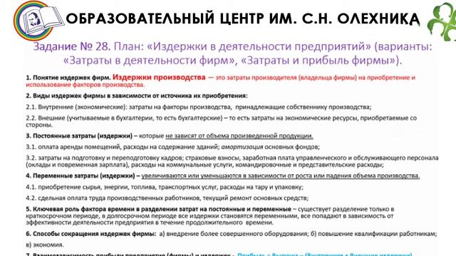 Тема 2.5. Постоянные и переменные затраты.