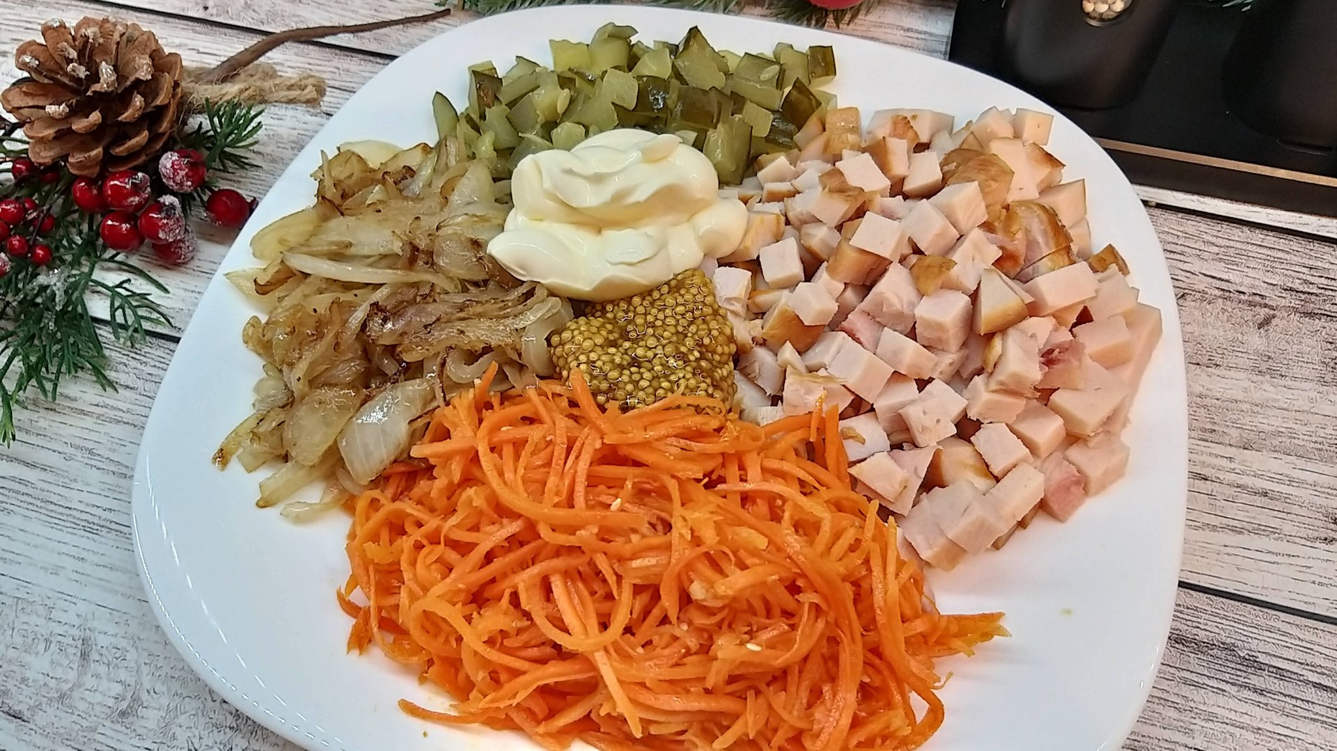 Если вам понравился мой рецепт, жмите пальчики вверх👍 и подписывайтесь на мой канал ☑️ Не забудьте про колокольчик🔔, чтобы не пропустить следующее видео▶️🎦. Делитесь этим видео в социальных сетях. А я желаю вам удачи в делах, хорошего настроения и, конечно же, приятного аппетита!😋 С уважением, Алина! По вопросам рекламы и сотрудничества: llalinka@yandex.ru Все свои видео для вашего удобства я разместила в тематических плейлистах. Салаты и закуски:▶️ https://rutube.ru/plst/91025 Заготовки на зиму:▶️ https://rutube.ru/plst/343659 Первые блюда:▶️ https://rutube.ru/plst/91023 Вторые блюда:▶️ https://rutube.ru/plst/50733 Пасхальная выпечка▶️ https://rutube.ru/plst/60965 Выпечка к чаю: сладкие пироги, печенье▶️ https://rutube.ru/plst/432881 Не сладкая выпечка:▶️ https://rutube.ru/plst/432888 Блинчики оладушки:▶️ https://rutube.ru/plst/60972 Обзор кухонной техники:▶️ https://rutube.ru/plst/60963 📖Ингредиенты: Копчёная грудка - 300 гр. Морковь по корейски - 150 гр. Лук - 1 шт. Огурец маринованный - 3-4 шт. Майонез - 2 ст.л. Горчица в зёрнах - 1 ст.л. Соль перец по вкусу. Сахар - 1 ч.л. Приятного аппетита! #салат #НовыйГод #обжора #вкусныйсалат #салатскурицей#простойсалат#обжоркасалат С уважением # Мамина Кухня у Алины#