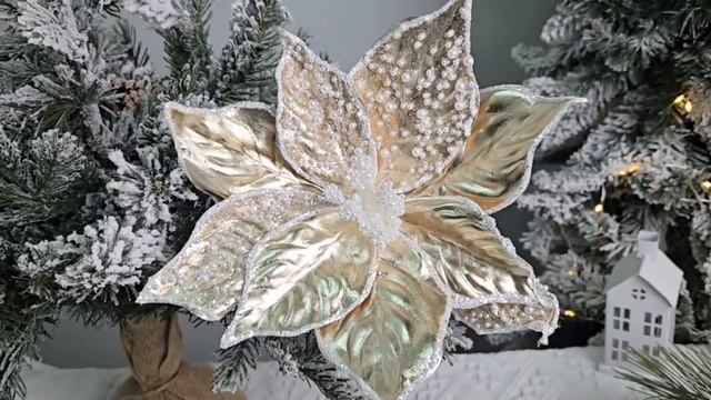 https://www.morozko-shop.ru/ Искусственный цветок ПУАНСЕТТИЯ 'ЗОЛОТО РОЖДЕСТВА' на клипсе, текстиль, 27 см, 13509